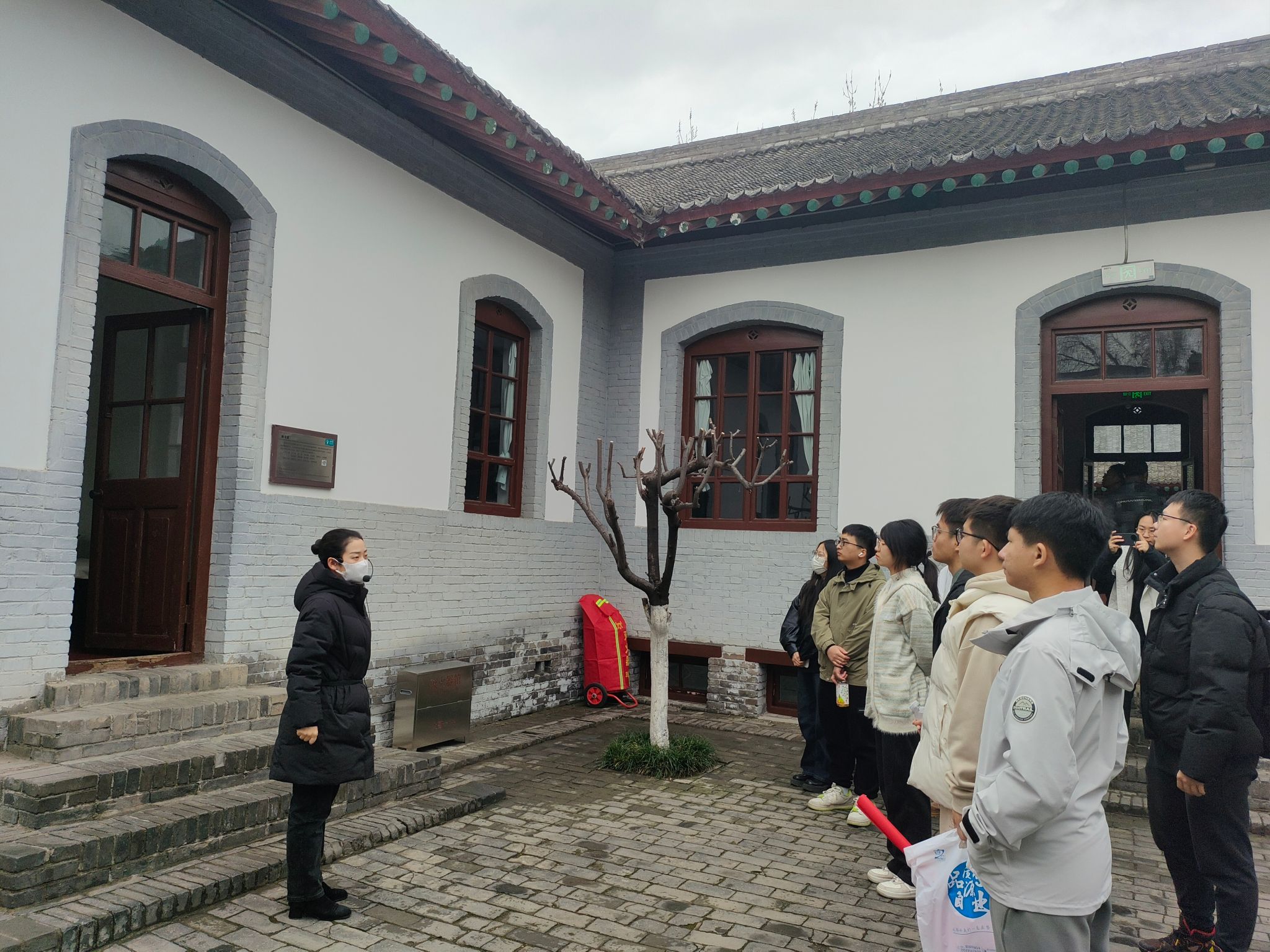 宣讲结束后,学院本科电科第一党支部、硕士24级党支部党员前往八路军西安办事处纪念馆开展实地研学。在讲解员的带领下,同学们依次参观了办事处旧址和历史纪念馆,学习八路军西安办事处的红色历史,共同感受红色文化的浸润和革命文化的荡涤。随处可见的黑白照片、整齐的工作用具、历史厚重的古朴建筑再现了当年八路军在此艰苦奋斗的场景,仿佛将众人带回了那段艰苦卓绝的革命岁月。最后,全体党员在纪念馆广场重温入党誓词。