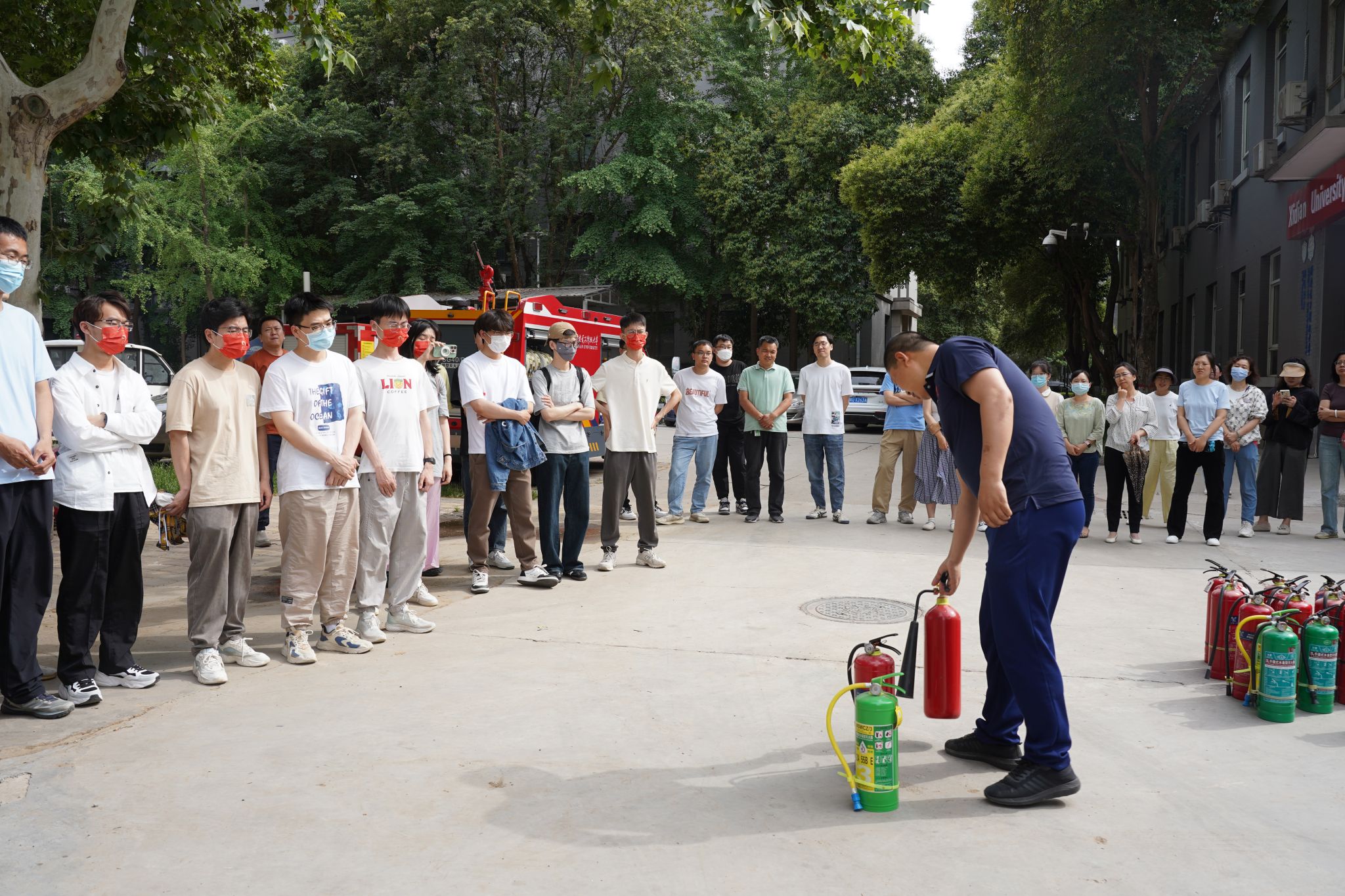 此次培训活动旨在普及消防知识,增强学院师生防灾减灾意识,提升应急自救互救能力。培训结束后,学院师生前往校消防站对灭火器的使用方法进行了实地学习,并开展了灭火器实操训练。