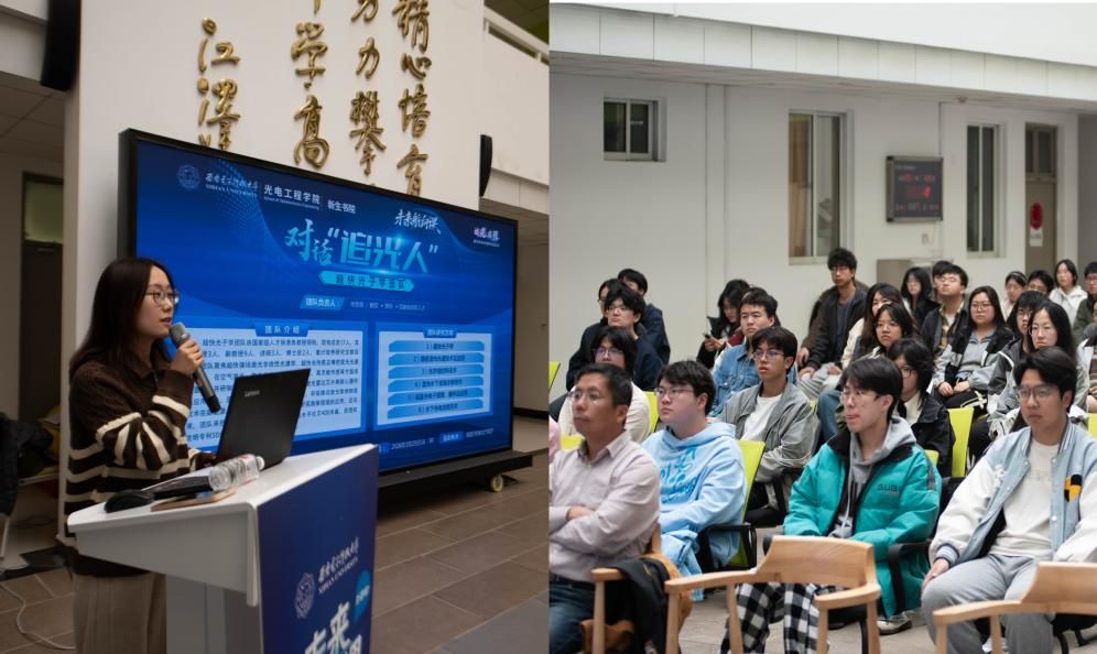 联合新生书院推出“追光·启程”系列活动——对话“追光人”。首场活动在海棠5号楼大厅前厅举行,学院超快光子学团队教师代表与百余名电子信息大类新生共同参与。