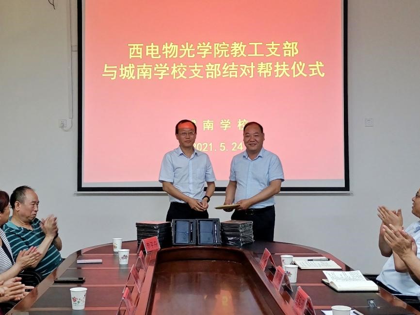 党委书记独国社带队,前往蒲城县城南学校开展教工党支部结对共建,执行院长邵晓鹏、正处级组织员高俊亮、党委副书记黄军荣、副院长辛红,物理实验中心主任李平舟、副主任武颖丽,团委书记陈海涛、本科生辅导员王纲共同参加了本次活动。蒲城县城南学校校长梁科现热情接待,仪式由城南学校党支部书记苏安文主持。