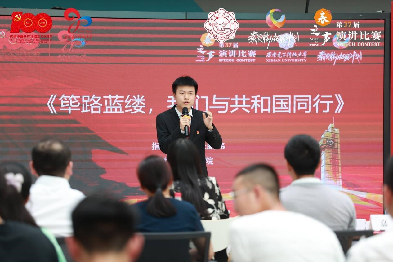 王熙成同学的演讲带着我们回忆往昔,那时列强入侵,军阀混战,在中国共产党的领导下,我们母校西电长征路上办学、半部电台起家是非常艰辛的,而如今,苦难变为过去,人民幸福安定,神州大地尽欢颜,“筚路蓝缕,我们与共和国同行!”