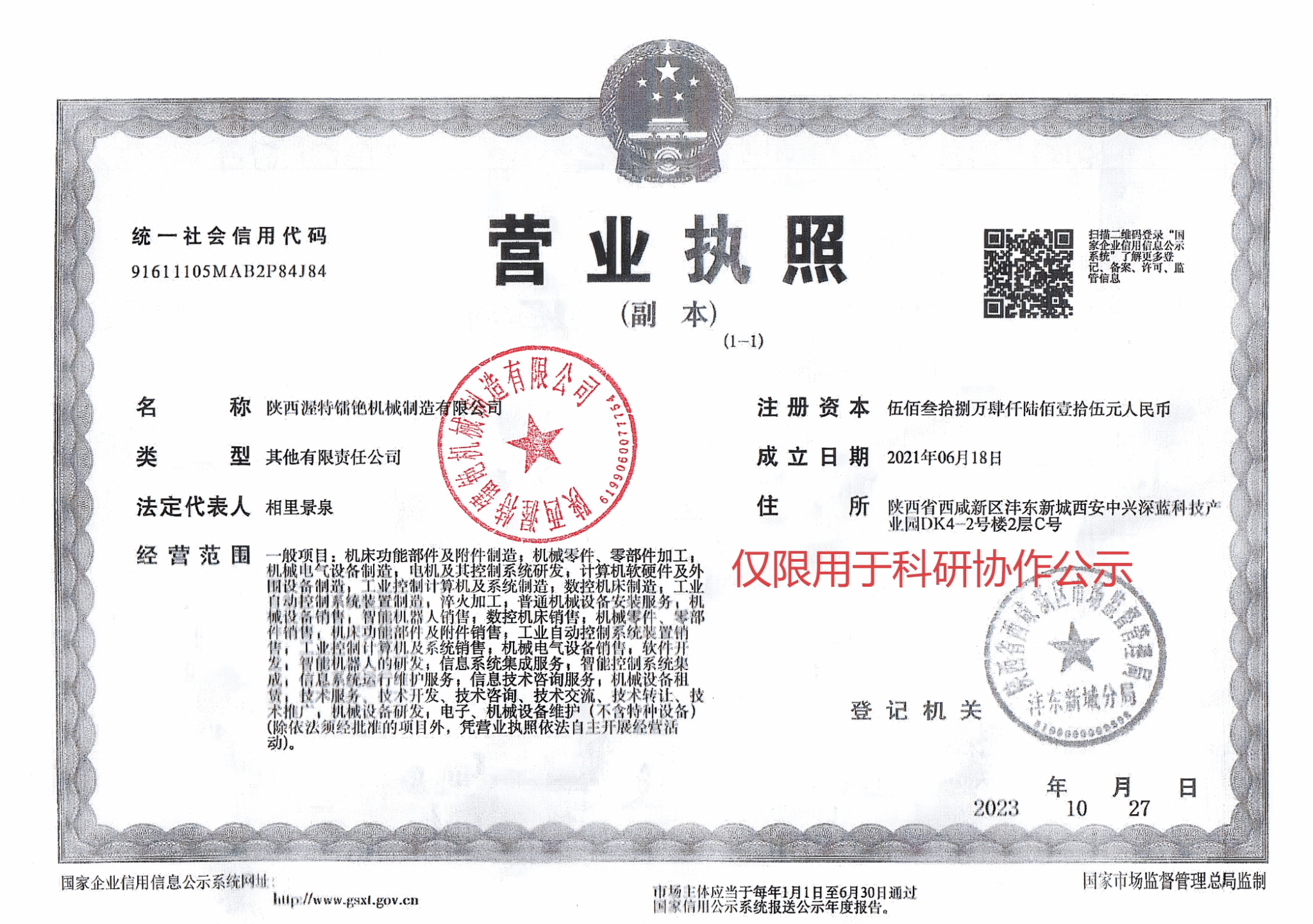 附件:外协单位营业执照